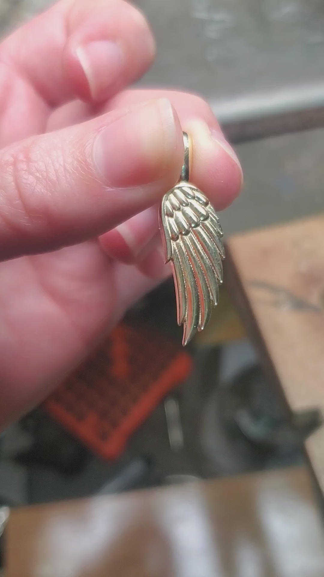 Majestic and golden this angel wing pendant captures the essence of grace and strength!