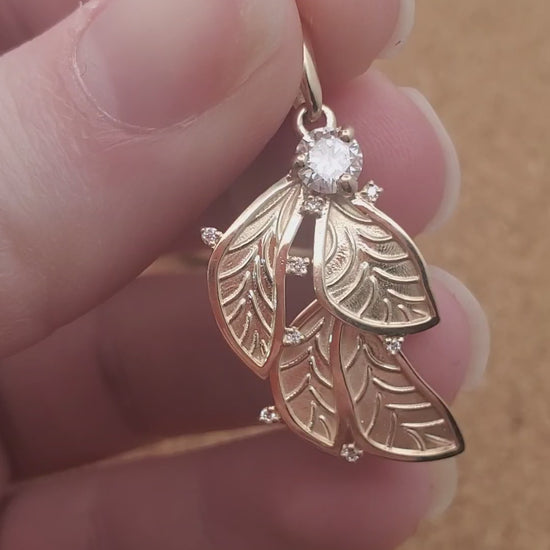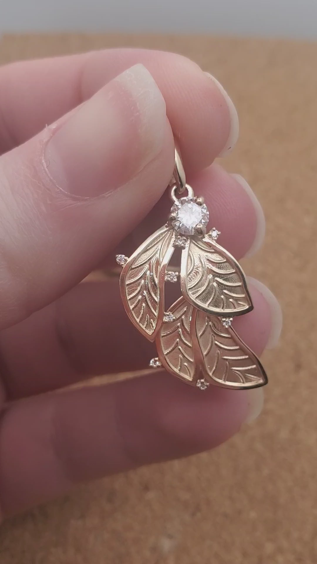 With a beautiful intricate leaf design and 0.45 cttw of natural diamonds this pendant is definitely a showstopper!