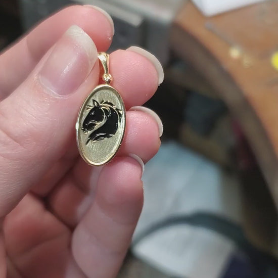 Charming solid gold enameled horse pendant! Perfect for the equestrian lover🐎
