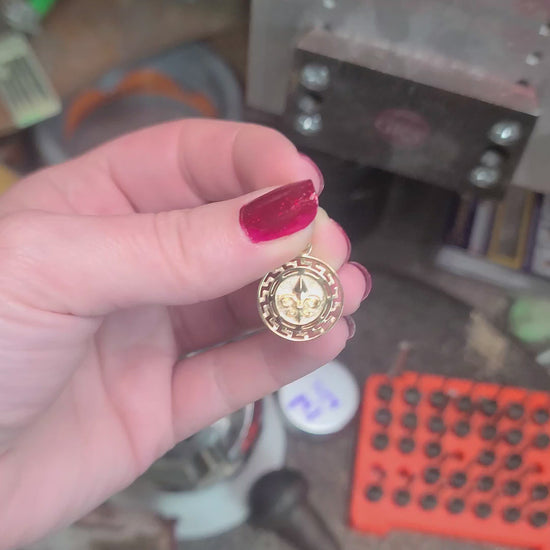 Two symbols, one solid 14kt gold pendant- an owl for wisdom, a fleur-de-lis for timeless elegance. Wear the side that speaks to you.