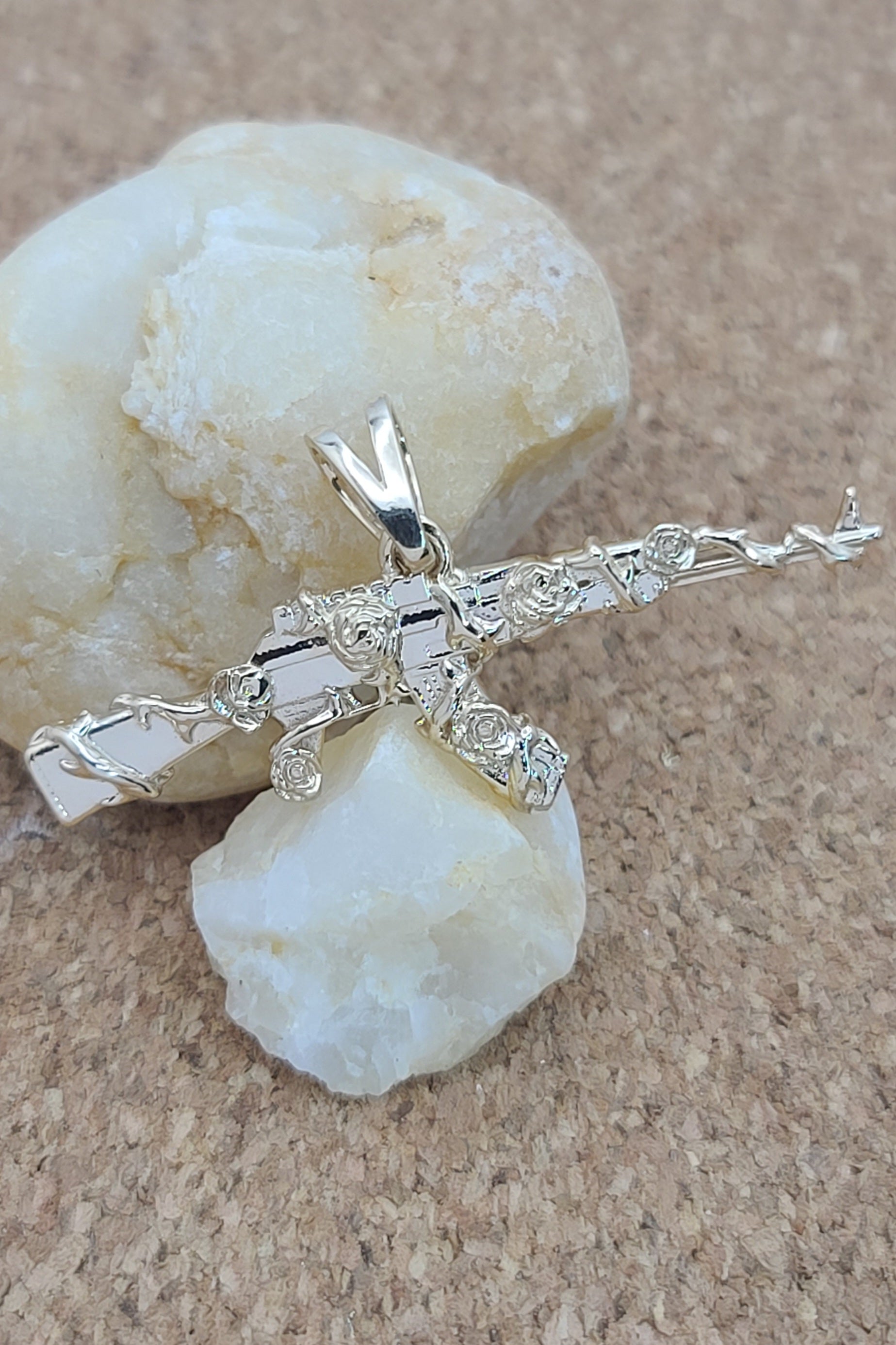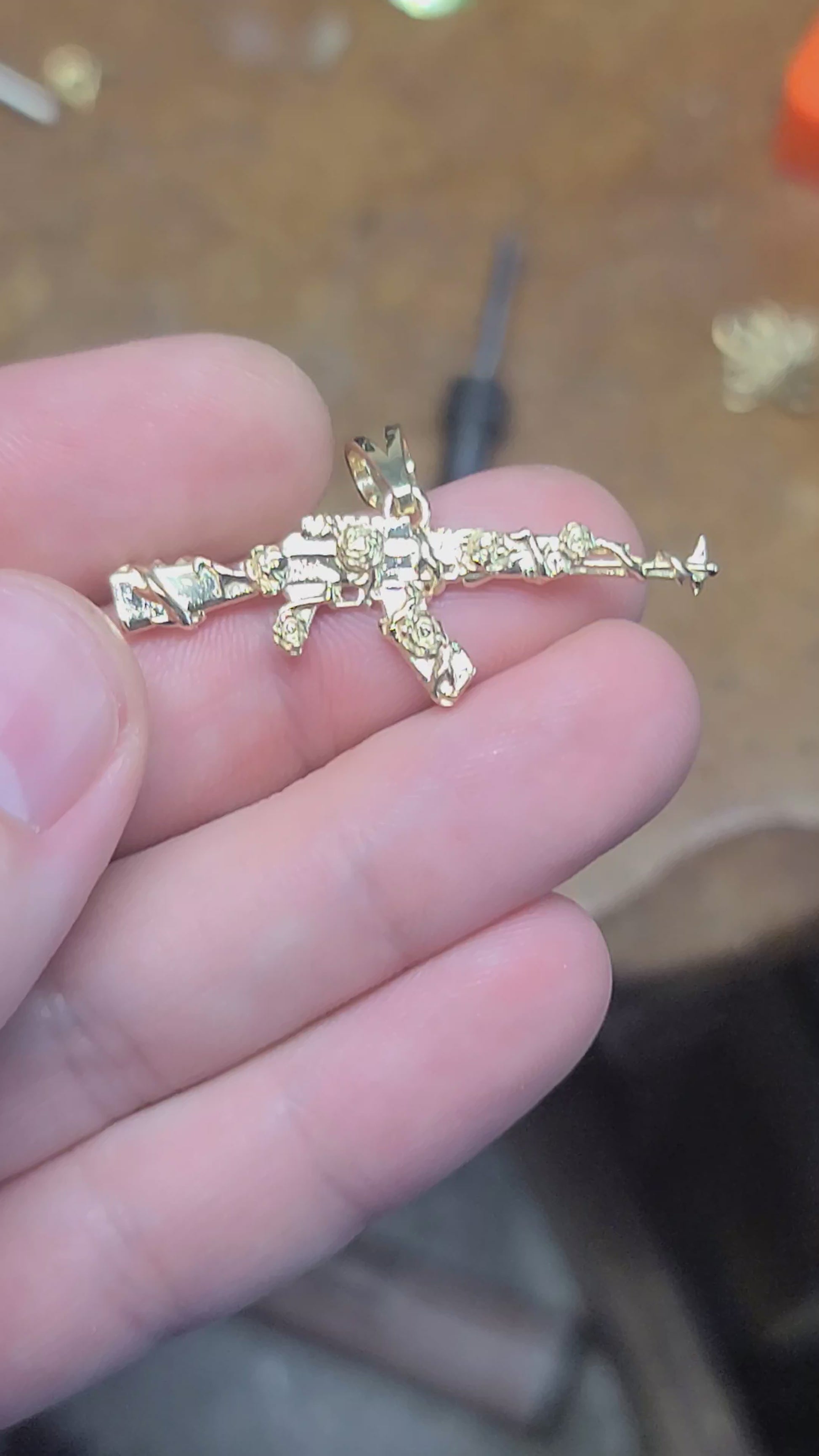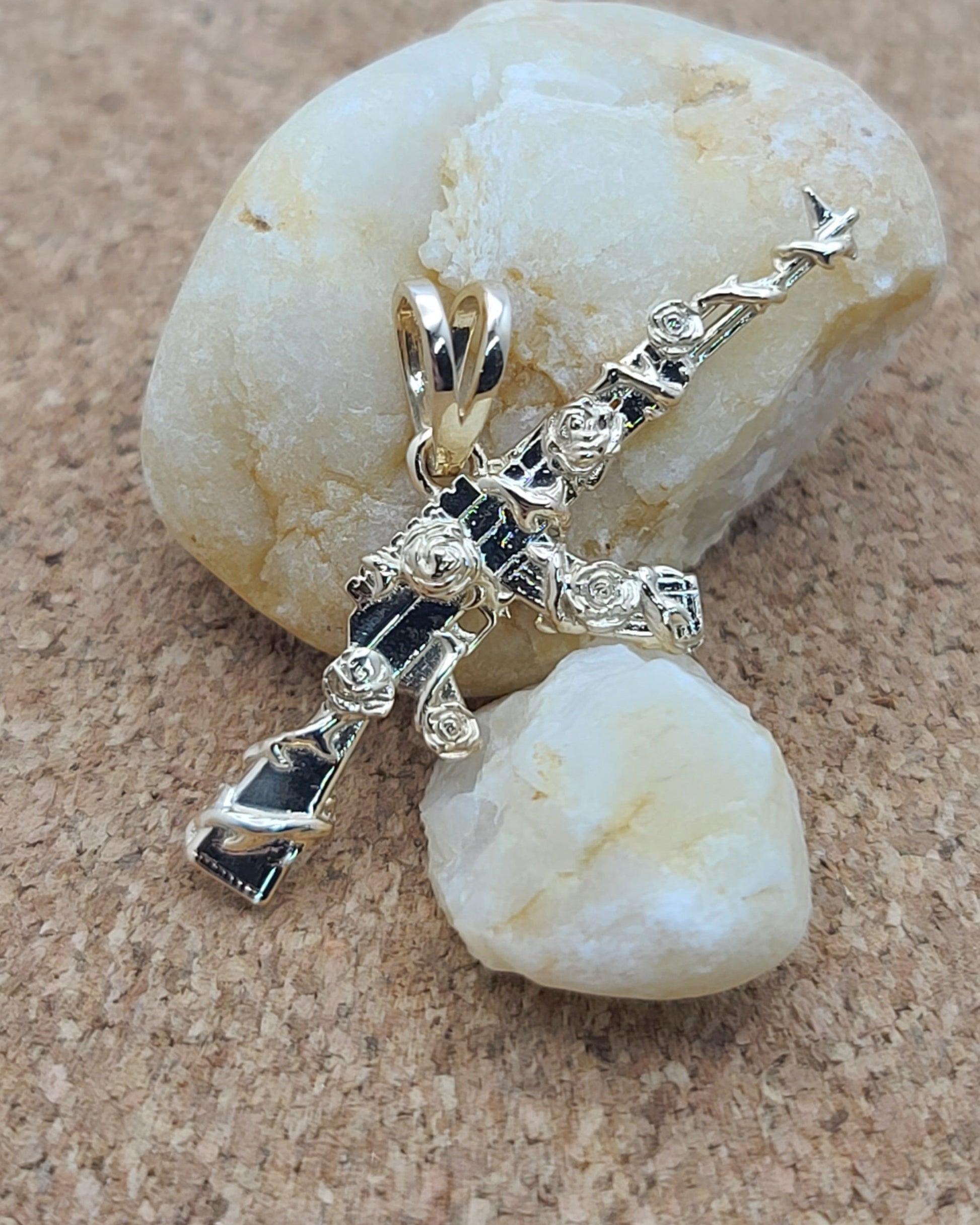 Solid 14kt gold and wrapped in vines and roses, this pendant is pleasantly detailed and has a smooth back. Made in your choice of color, this pendant makes an awesome present for that someone with everything. We recommend at least our small chain for this pendant.