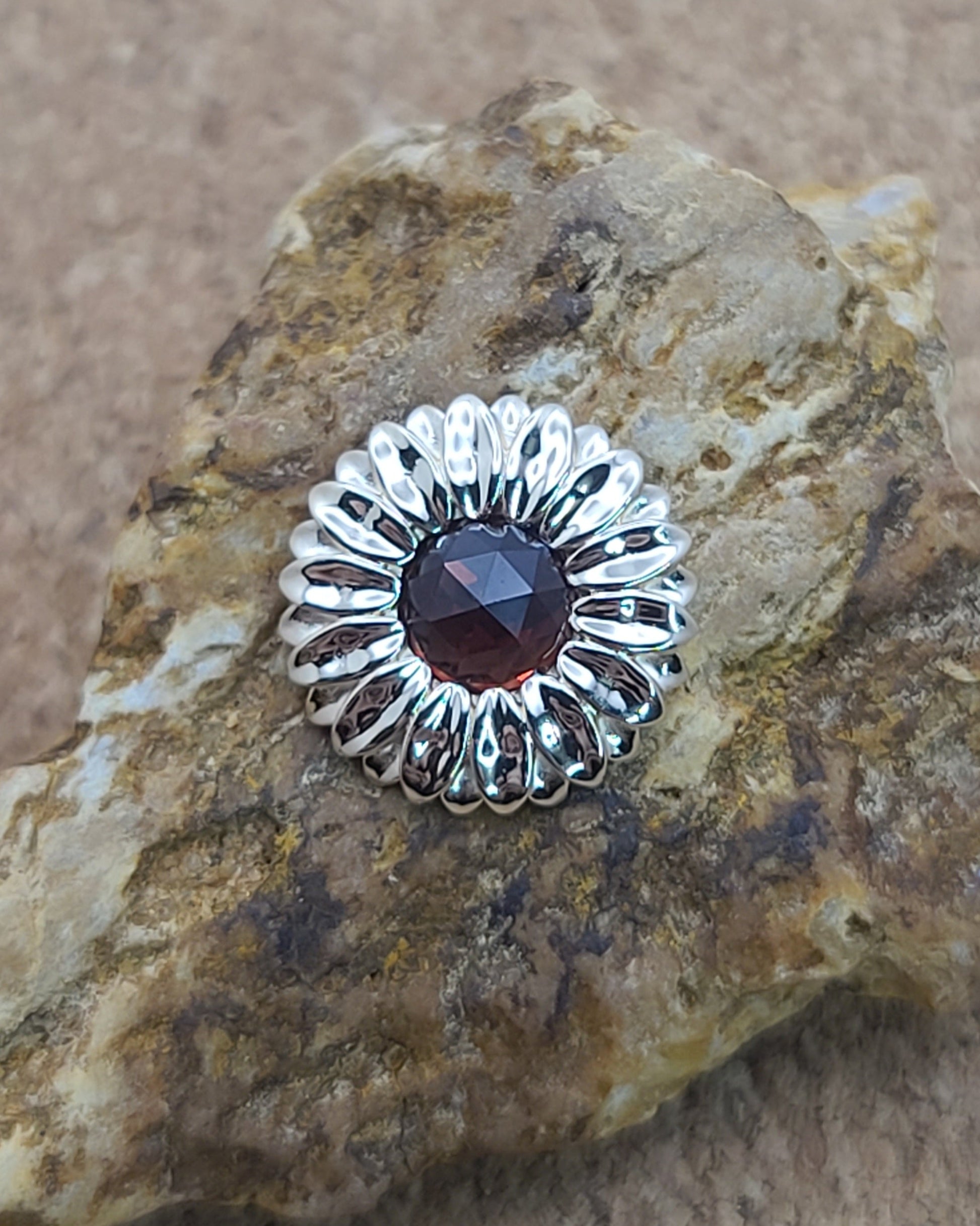 Petite Garnet Sunflower Pendant