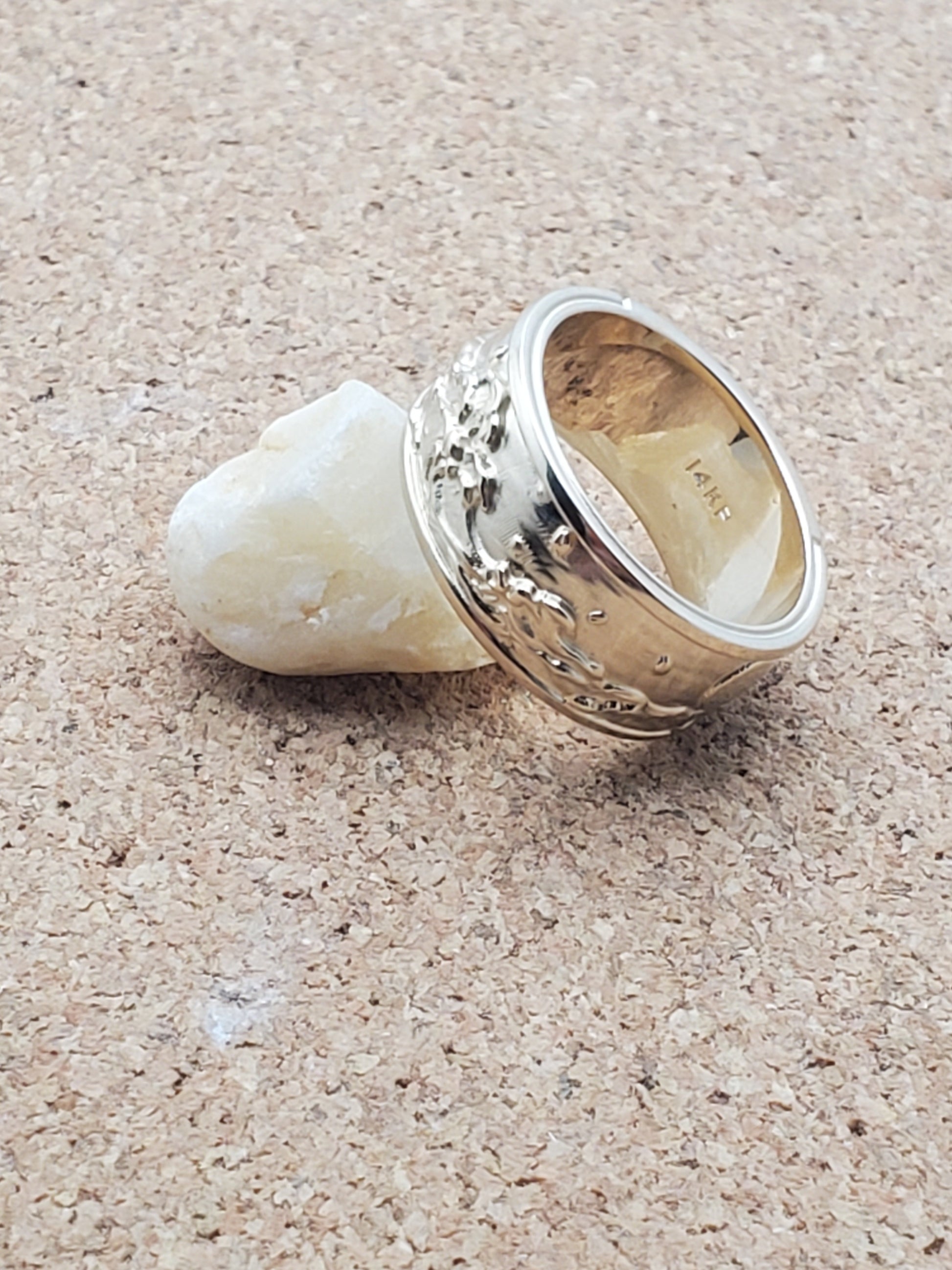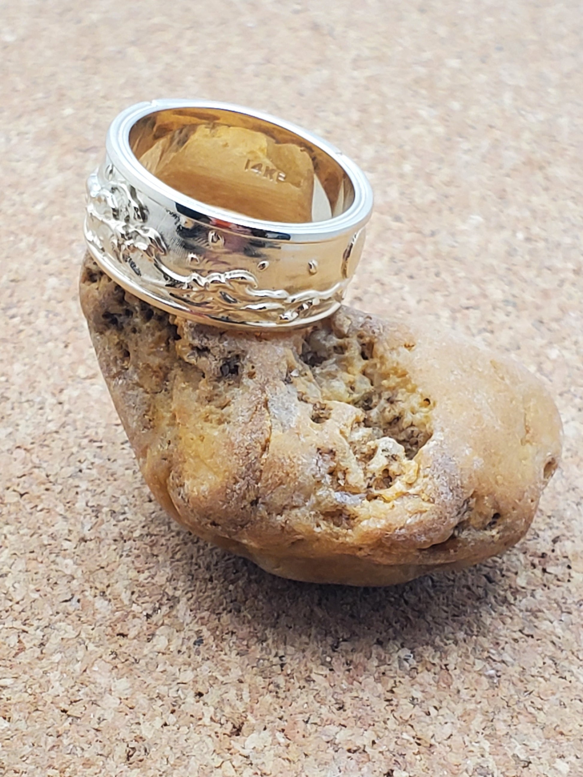 14kt solid gold of pure paradise with its beautifully carved waves over a perfect moonlight.